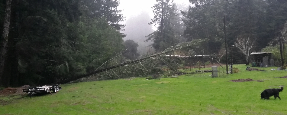 A leaning fir tree, was no match for the wet windy winter of 2010.