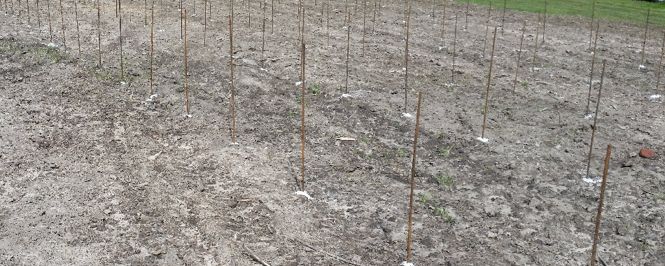 White powder marks the spot. Had to go get more stakes. Nothing is perfect.